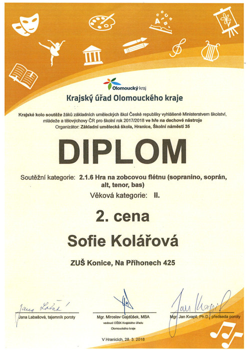Soutěžní kategorie: 2.1.6 Hra na zobcovou flétnu (sopranino, soprán, alt, tenor, bas)